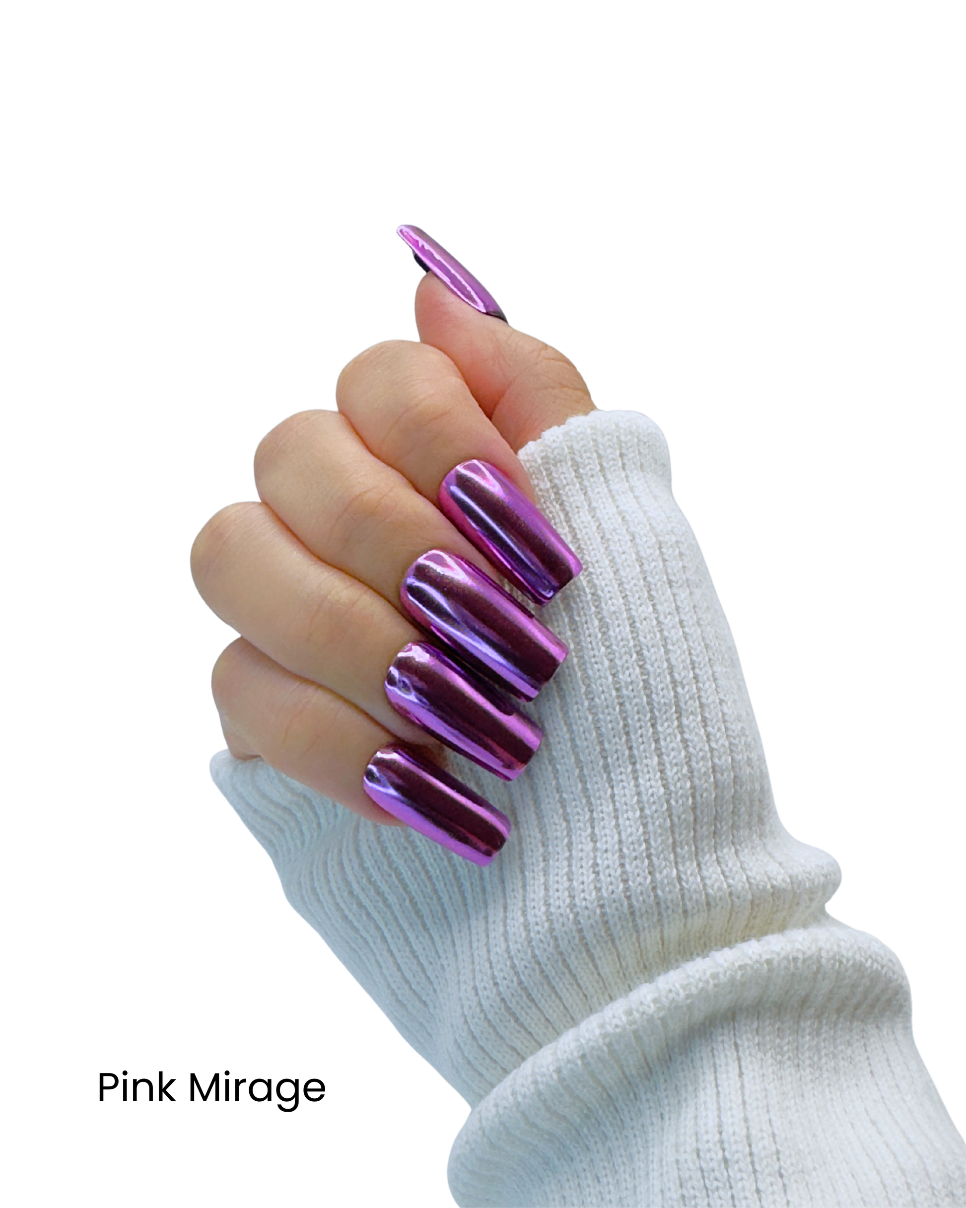 Enter your glam era with Vol. 4 – Pink Obsession. Choose from Fever Dream (hot magenta), Pink Mirage (cool pink), or Paris (mauve rose) — three reflective pink chromes made for statement makers. Available in any shape and length.