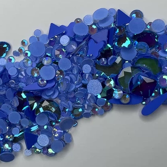 MULTIPLE SHAPES FLATBACK RHINESTONE MIX / MOCHA BLUE AB