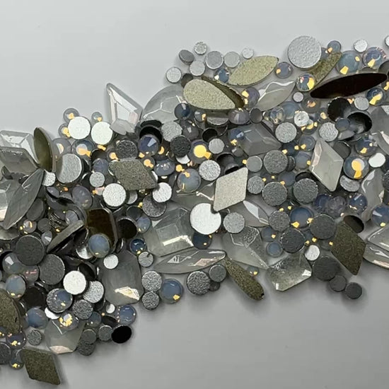 MULTIPLE SHAPES FLATBACK RHINESTONE MIX / WHITE OPAL