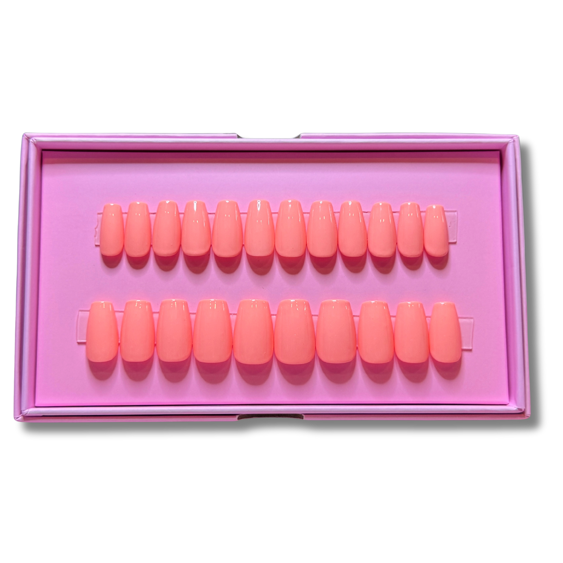 Ready to Wear Coffin/Short set in a neon pastel orange gel polish.